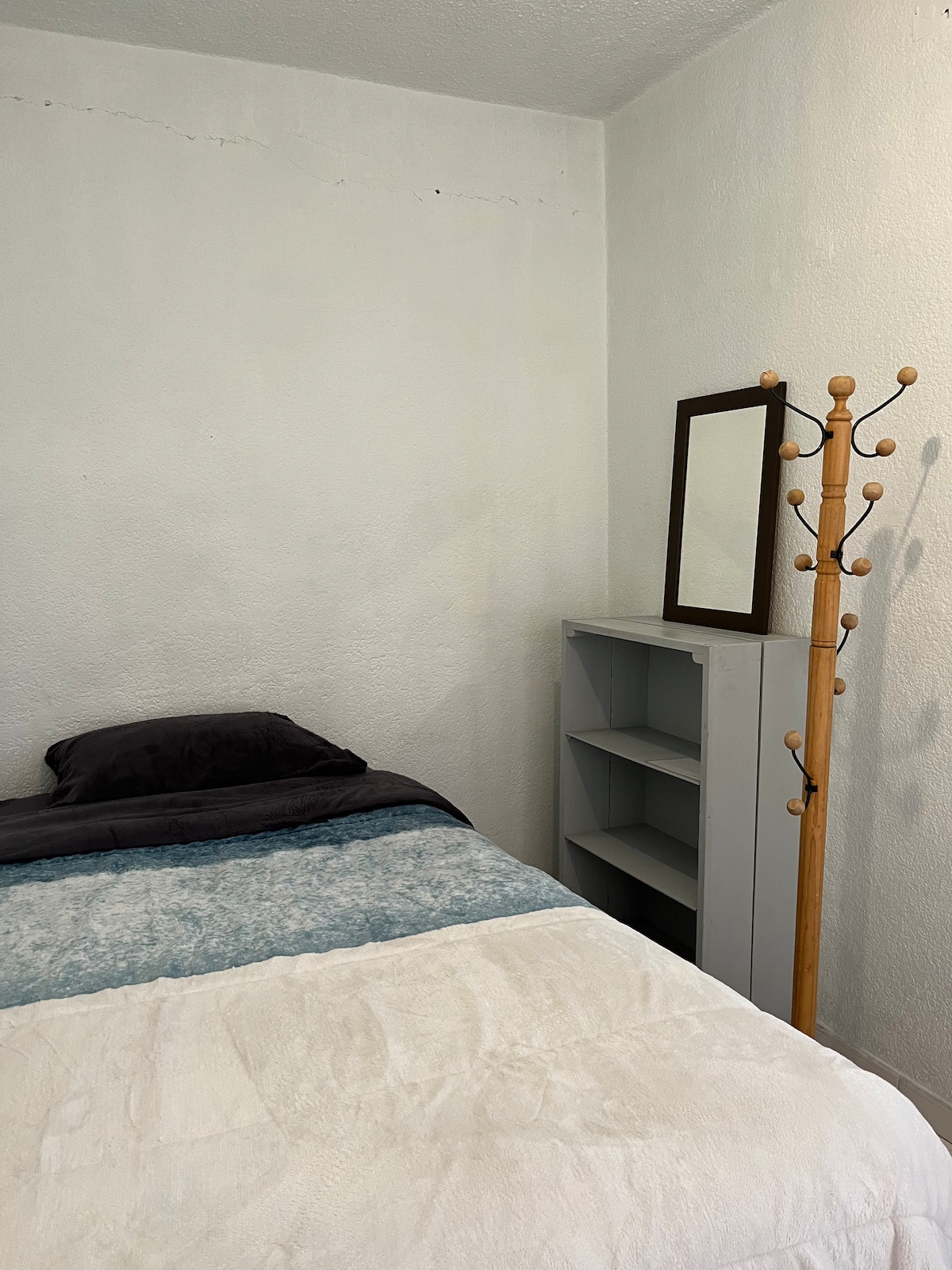 Desde 2018, Un Lugar Tuyo en Cdmx significa calidez, confianza y exclusividad total con su familia o amigos. Disfrute de comodidad, limpieza, cero ruido urbano, independencia, tranquilidad, seguridad y descanso. Hogar rústico, con cocina comedor pequeña, baño y recámara con 2 Camas + 1 individual. Ubicado en el primer piso. Con acceso a Metrobus, Metro Bellas Artes, a 12 minutos del Zócalo. Su estancia larga será mas confortable por descuentos de 1, 2, 3 semanas y mensual. Bienvenido el mundo!