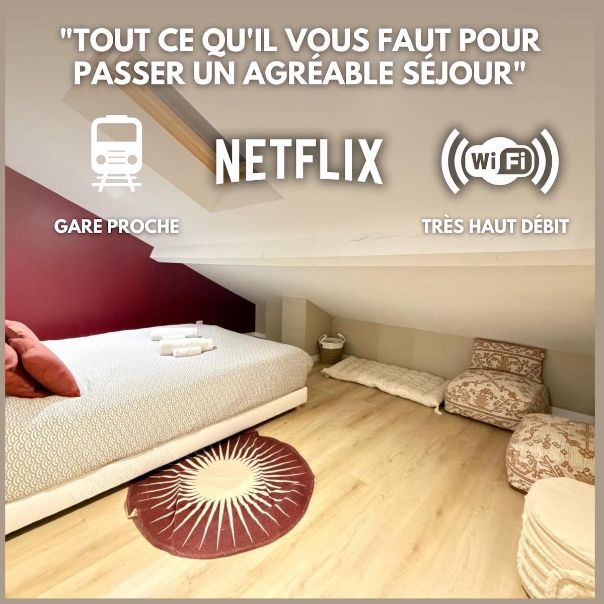 MAISON EOLE Myladenia para sus estancias en Lyon. 9 hermosas habitaciones amplias y tranquilas con camas cómodas. La superficie total del alojamiento es de 340 m². Dispondrá de 2 plazas de aparcamiento, una sala de reuniones, un jardín, un gimnasio, 4 baños, 4 aseos. Una cocina moderna equipada con isla central. Conexión a Internet de alta velocidad. Situado en una zona tranquila en el barrio histórico de Gratte-Ciel, a 3 minutos a pie del metro. En pocas estaciones estarás en el centro de Lyon.