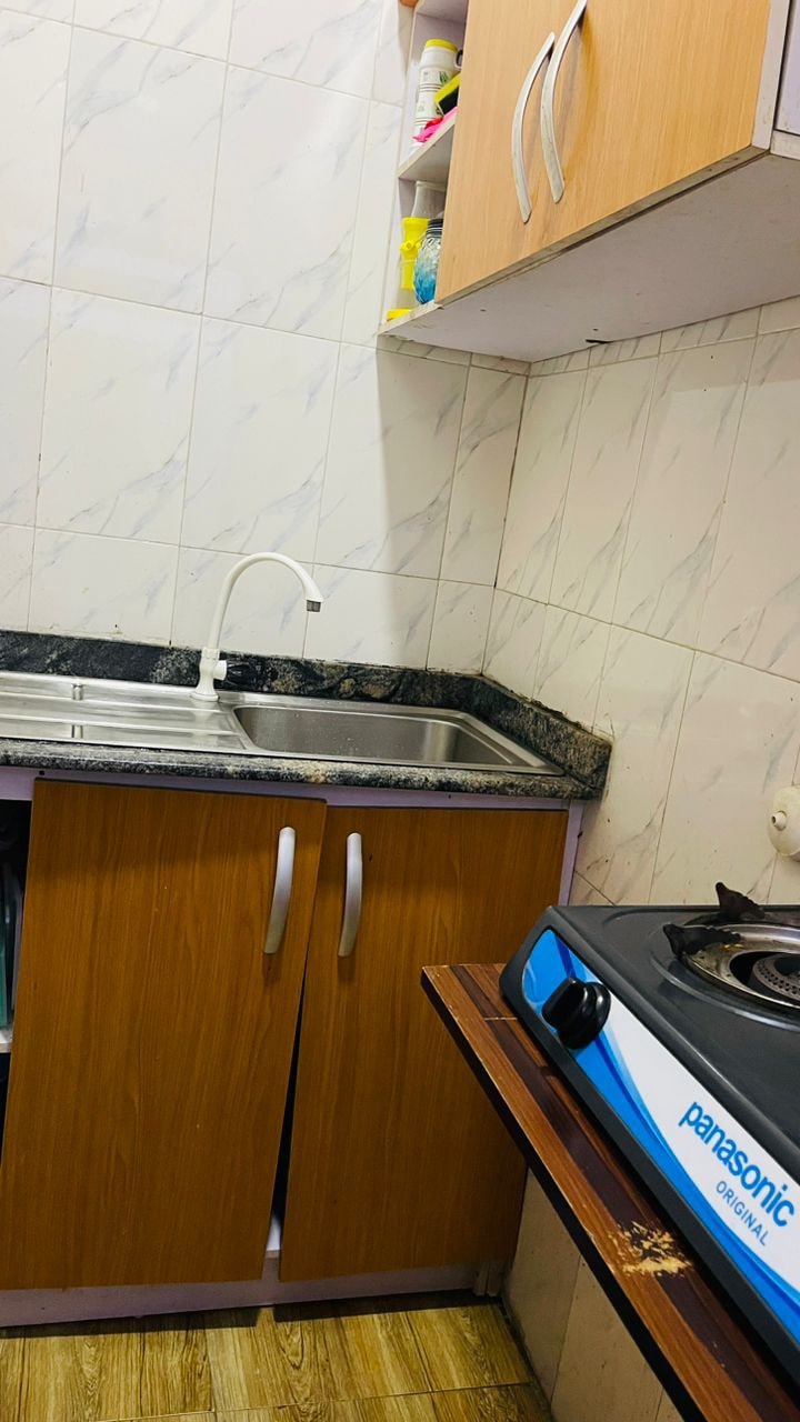 Este apartamento estudio totalmente amueblado está situado en un barrio vibrante lleno de tiendas, centros comerciales y opciones de entretenimiento, que proporciona un alojamiento cómodo para dos. Cuenta con una cama acogedora, baño privado y amplio espacio en el armario. Para mayor comodidad, el apartamento está equipado con un ventilador de pie y un generador de respaldo para garantizar un suministro de energía ininterrumpido durante las interrupciones.