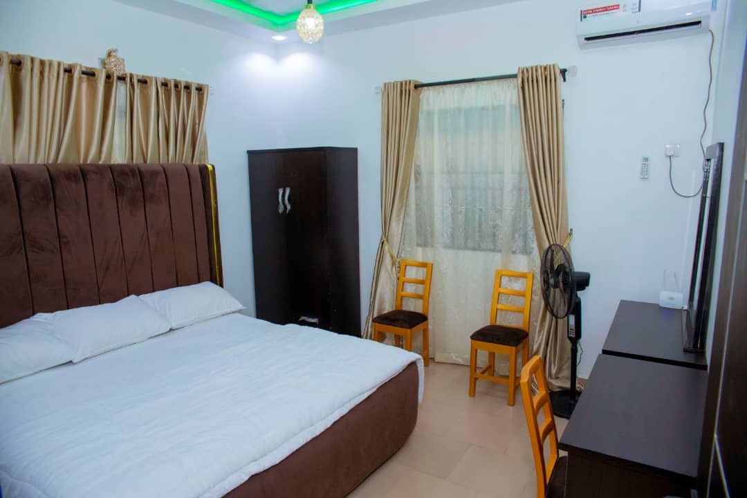 Relájate con toda la familia en este lugar tranquilo para hospedarte. Vicole Luxury Apartments: es un Airbnb Apartments en Aba, Abia-State, Nigeria, que cuenta con diferentes hermosos apartamentos de tres dormitorios. Este espacio totalmente amueblado cuenta con una cocina moderna, una acogedora sala de estar, un área de trabajo dedicada y un diseño espacioso diseñado para relajarse. Con una seguridad de primer nivel, los huéspedes pueden disfrutar de la tranquilidad y nuestro servicio de taxi del aeropuerto hace que el viaje sea conveniente. ¡Reserva Vicole para una estadía excepcional!