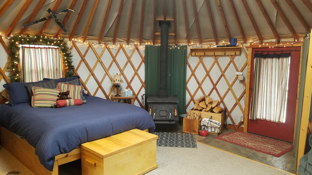 Esta preciosa YURTA, hecha a mano por el propietario y totalmente amueblada, con vistas a la montaña, puestas de sol espectaculares y estrellas junto al fuego, estará lista para que disfrutes de grandes noches de sueño bajo el edredón de plumas en la cómoda cama tamaño queen. ¡Seguro que estarás bien descansado! Hay una nevera pequeña y una variedad de café/té/chocolate y golosinas, junto con algunos productos de papel, también proporcionados. ¡Impresionante escapada o parada en el camino, o simplemente ven a jugar!