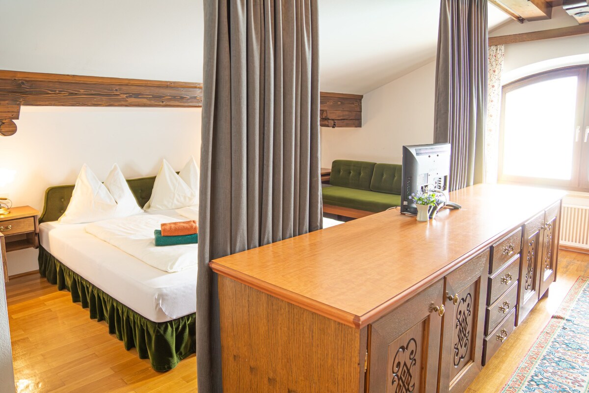 ¡Exclusivo apartamento chalet para dos, a solo 2 minutos caminando desde el lago Wolfgang! Lujoso estilo alpino con mucha madera antigua, bañera independiente en el dormitorio con vistas al Schafberg y St. Wolfgang. Sauna privada, cocina totalmente equipada, acogedora sala de estar con chimenea y TV. El balcón con salón te invita a relajarte y comer. ¡Encantador y de alta calidad, perfecto para una escapada en las montañas! Nota: Nuestra propiedad solo es adecuada para huéspedes mayores de 14 años.