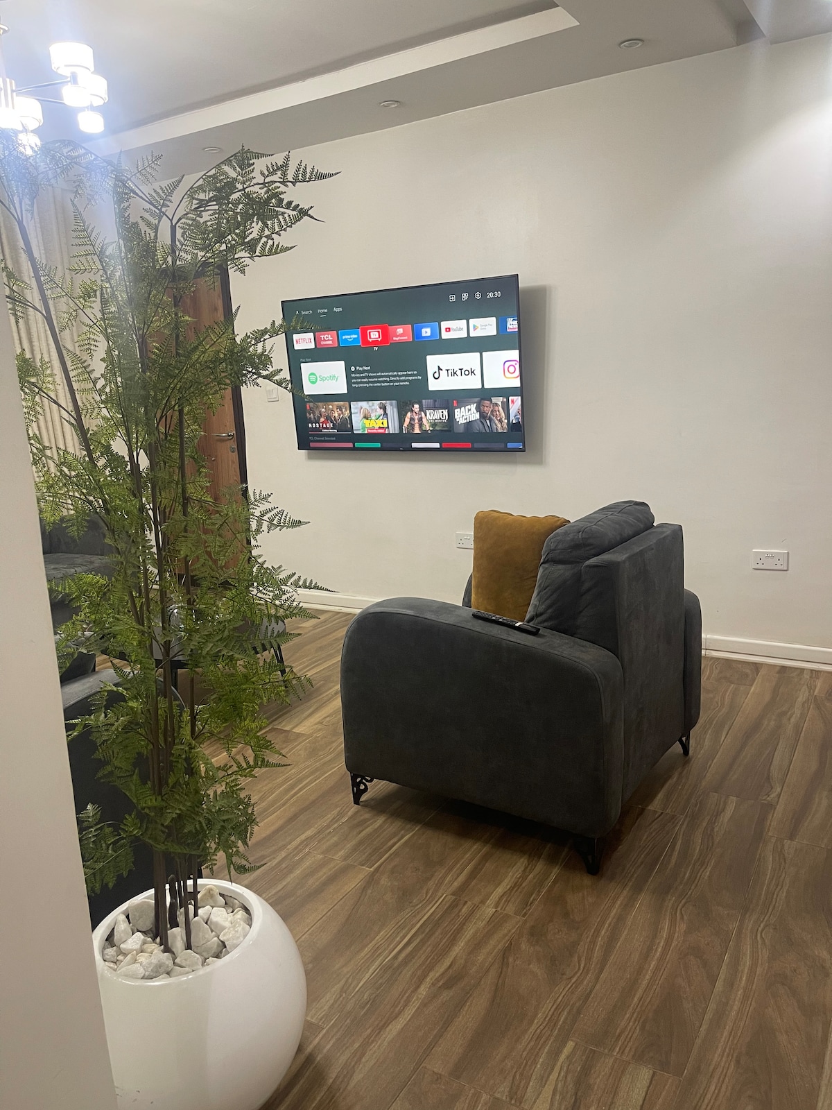 Disfruta de una experiencia elegante en este apartamento céntrico. Un apartamento de 2 dormitorios con características como PlayStation 5 y últimos juegos bajo petición, reloj antiguo del padrino, TV de 65 pulgadas. También ofrecemos seguridad estricta, vigilancia las 24 horas, los 7 días de la semana, energía las 24 horas, los 7 días de la semana con generador de respaldo, WIFI, estacionamiento gratuito, proporcionando a los residentes una sensación de seguridad y tranquilidad. Tenemos los mejores centros comerciales y clubes cercanos como 4U Supermarket, H-Medix, supermercado Pay Greens, etc.