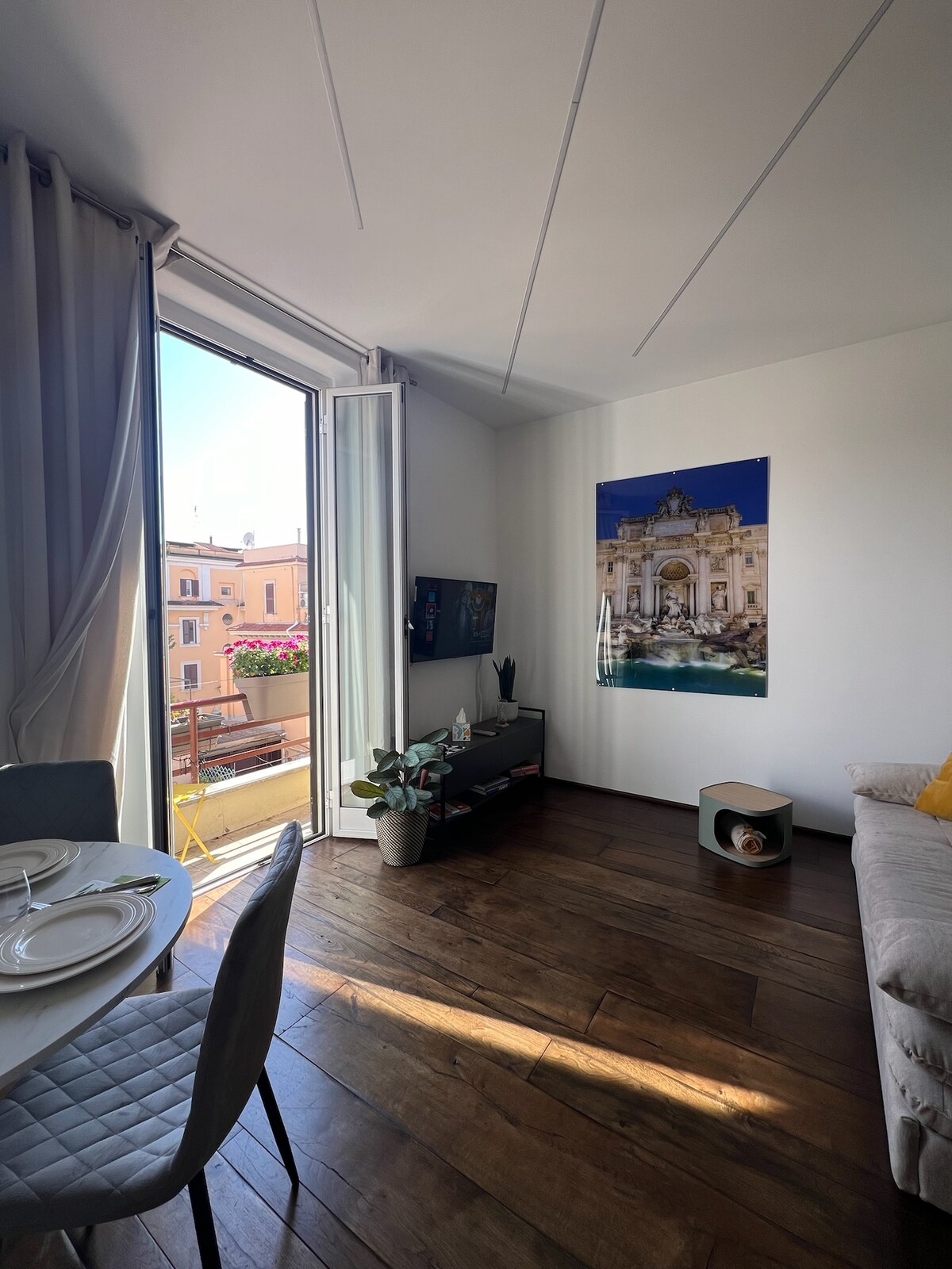 Ubicado en un edificio histórico frente a una de las plazas más emblemáticas del mundo, este apartamento de un dormitorio está situado en el primer piso y cuenta con comodidades modernas y un envidiable patio, perfecto para cenas al aire libre. Ideal para parejas o familias pequeñas, el apartamento cuenta con un sistema de aire acondicionado de primera categoría en todas las habitaciones, un sistema de sonido inalámbrico en varias habitaciones, un baño de vapor y una bañera. Sal por la puerta principal para lanzar tu moneda y sumergirte en el animado ambiente del centro de la ciudad.