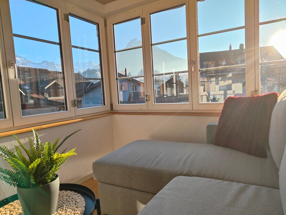 Apartamento central y acogedor de estilo suizo con vistas a la montaña