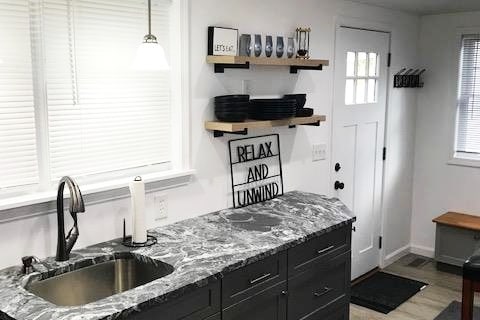 Nuestro acogedor bungalow es fácilmente accesible desde la ciudad. Te sumergirás en un entorno natural con bosques, estanques y senderos. El dormitorio tiene una cama doble, además de un televisor Roku y un tocador. El sofá se convierte en una cama tamaño queen. Hay otro televisor en la sala de estar. Puedes acceder a tus propias cuentas de Netflix, Prime o cualquier suscripción que tengas, así como a los canales de televisión habituales. El baño también cuenta con lavadora y secadora para tu comodidad. Se proporciona jabón de lavandería.