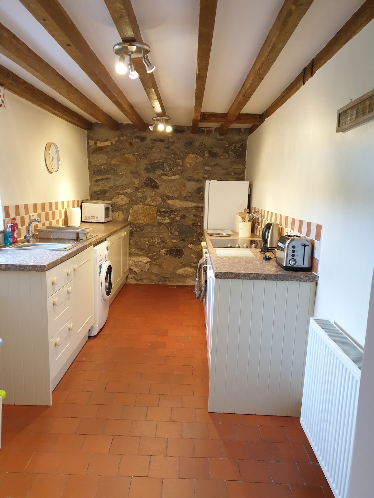 Un espacioso anexo de 1 dormitorio con gran salón comedor, la propiedad está a 5 minutos a pie de la ciudad, castillo, restaurantes, Galeri, etc. y a 2 minutos del carril bici Lon Las. El anexo tiene un dormitorio en la planta superior que tiene una cómoda cama tamaño king y un baño con ducha en suite. La cocina está totalmente equipada con nevera con congelador, horno, vitrocerámica y lavavajillas. El lavadero tiene lavadora y también hay un aseo en la planta baja. Hay mucho aparcamiento disponible en la calle.