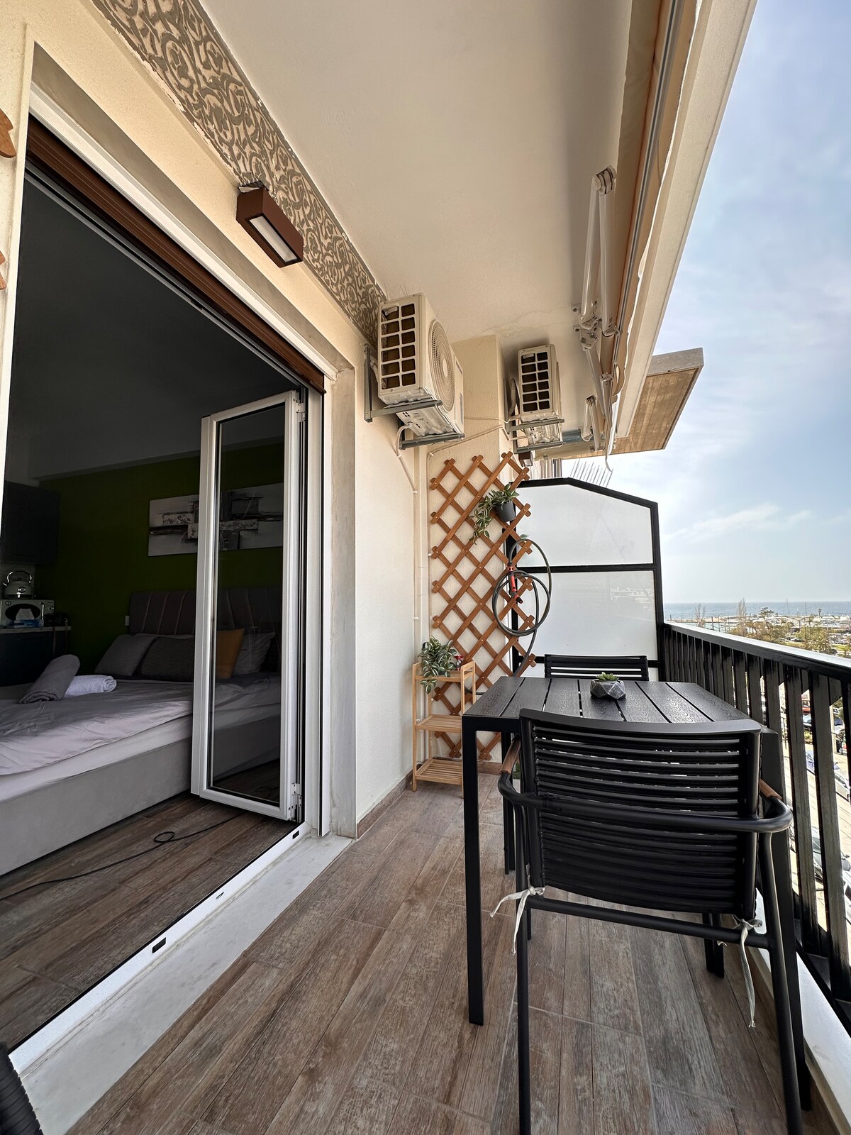 ¡Increíbles vistas al mar! Apartamento completamente renovado, tranquilo (doble acristalamiento), funcional, 2 balcones, 1 baño completo con ducha grande, 1 inodoro, 2 dormitorios y cocina totalmente equipada (horno, nevera grande, cafetera de filtro, Nespresso, vajilla, cubiertos, cristalería, ollas, sartenes, etc. En el piso superior (5º) de un edificio de apartamentos en el corazón de la ciudad de Glyfada. Fácil acceso a pie a la playa / océano, tiendas en la avenida Metaxa y a las estaciones de autobuses y taxis y a numerosos restaurantes, tiendas y cafés.