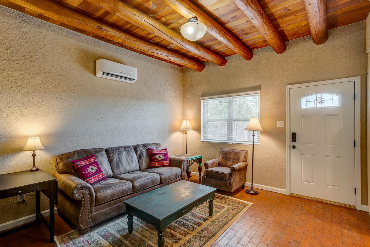 AC & Heating in casita. Air Conditioning Details: Split Type Ductless System Horse Ranch Casita is a small 700 sqft guest house, located on the South side of Santa Fe. This Santa Fe style casita has the perfect touch with beautiful ceiling vigas and plaster walls. Located on a private property where you can relax from the city sound. Has a wide open area where you and your pet can enjoy some playtime. Plenty of parking space great for both small cars and big pick up trucks with trailers.