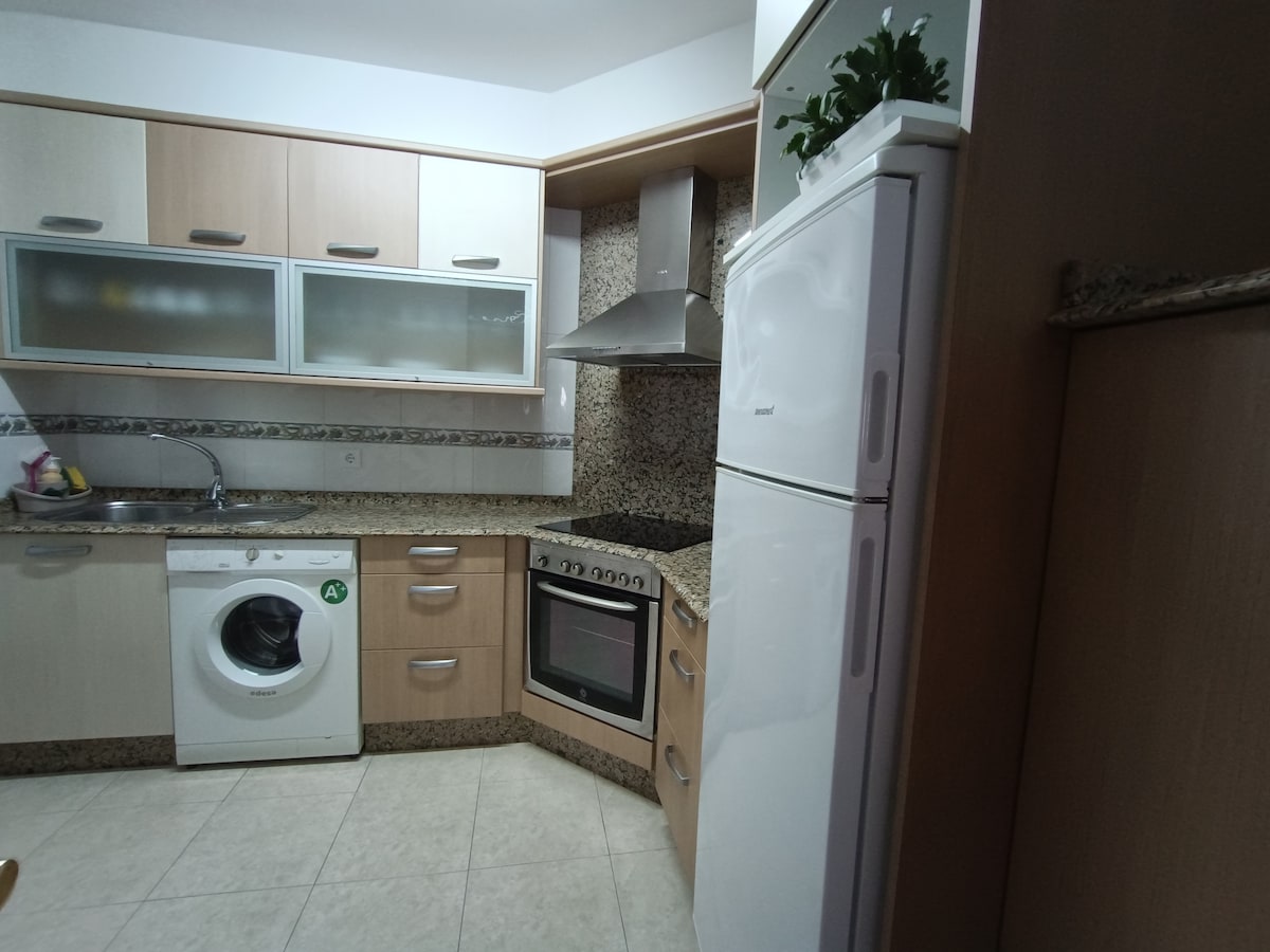 Disfruta de la sencillez de este alojamiento tranquilo con piscina zona barbacoa y jardín...cocina totalmente amueblada ( vitro, microondas,lavadora, lavavajillas nevera,campana..) La habitación tiene cama matrimonio de 1,50cm y armarios empotrados con TV. El salón tiene sofá cama nuevo a estrenar y TV 42". Aseo con bañera. Plaza de garage con trastero.