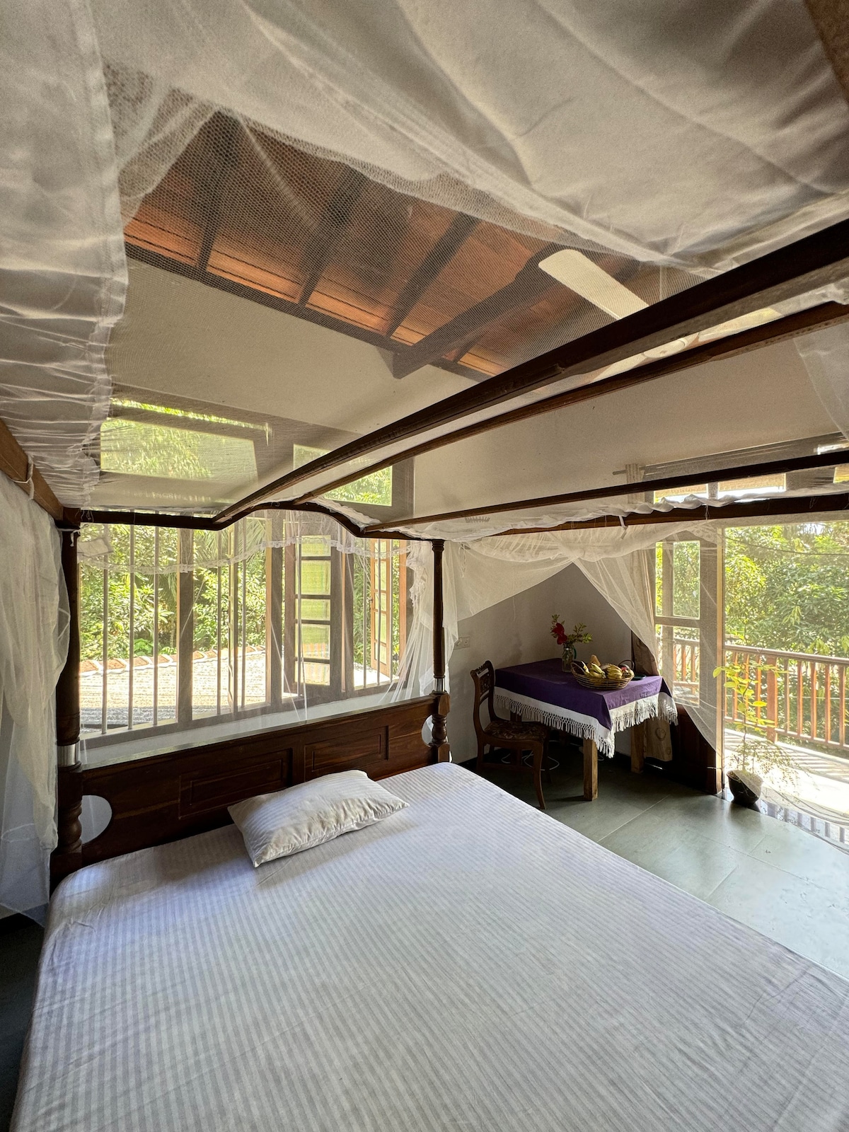 Bask in the serene ambiance of this modern 1st-floor apartment, lovingly hosted by a warm local Sri Lankan family. Relax in a peaceful setting away from busy roads, and admire lush greenery from your balcony. Head to the rooftop terrace for yoga or soak up the treetop views. Located just minutes from Ahangama’s center, the simple yet stylish design promises comfort and privacy, while you enjoy genuine island hospitality.