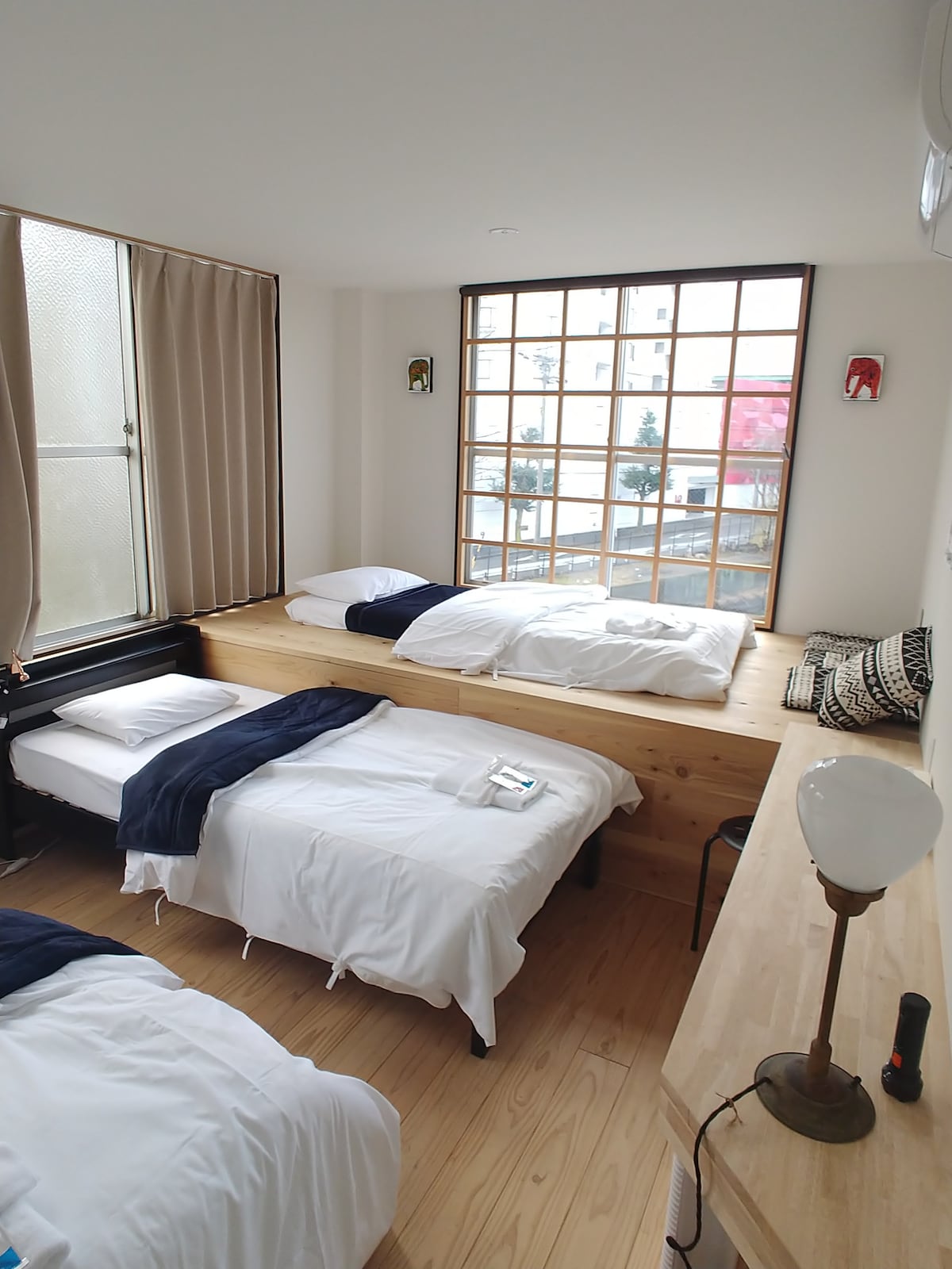 Es una habitación privada para 3-4 personas en la "casa de huéspedes". Puedes usarlo con un colchón que se almacena en la habitación. La calle comercial Osu está a 7 minutos a pie y hay un bar bullicioso con clientes habituales locales. La cocina compartida en el piso de la casa de huéspedes está equipada con utensilios de cocina, condimentos y se puede cocinar de inmediato.El acceso a los supermercados, tiendas de conveniencia y farmacias cercanos se encuentra a 350 metros. La sala de estar compartida y espaciosa puede ser disfrutada por amigos y otros huéspedes durante 24 horas. También hay un mostrador en funcionamiento, por lo que puedes trabajar en tu PC, etc. Dado que no se incluyen los siguientes, Se alquilará o comprará. Alquiler toalla facial 50 yenes Alquiler toalla baño 100 yenes Cepillo de dientes 50 yenes Lavadora 200 yenes Secadora 300 yenes El horario de check-in es entre las 16:00 y las 23:00. Infórmenos de su hora de llegada preferida después de hacer una reservación. Además, hay un dormitorio femenino (que se puede alquilar para 3 personas), un dormitorio mixto, una habitación privada con una cama doble y una habitación privada con una cama doble. Ponte en contacto con nosotros para obtener más información.