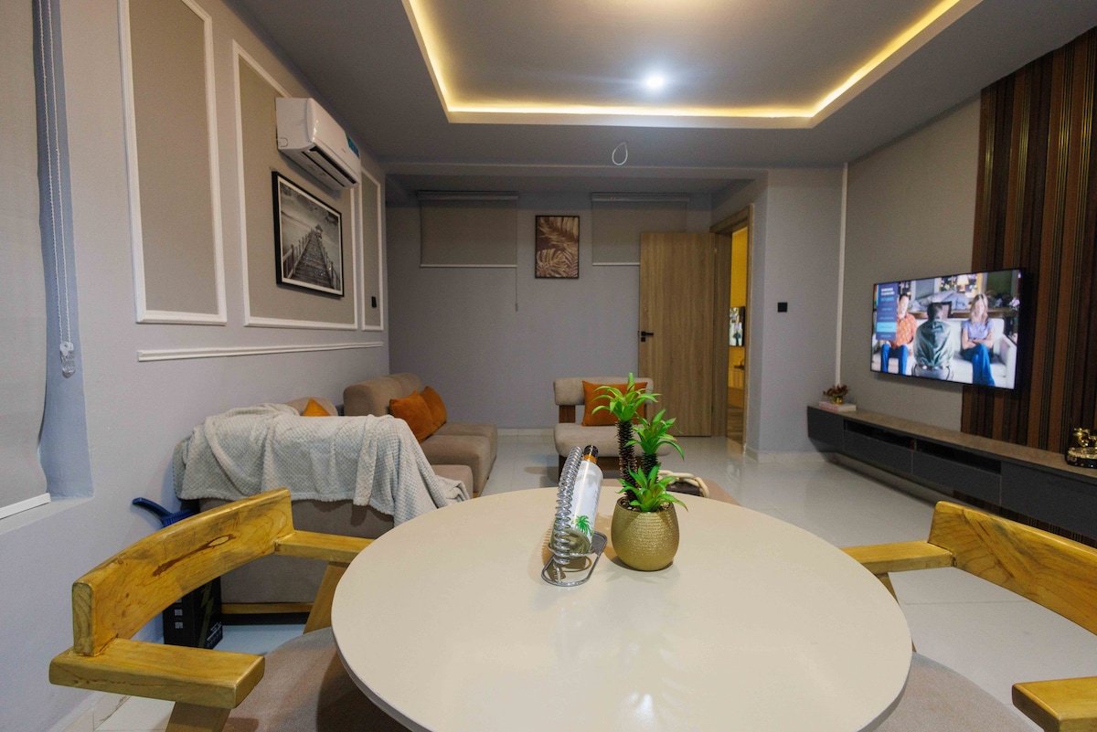 Bienvenido a tu hogar lejos de casa... agua limpia y servicio con una sonrisa. Somos un refugio de 3 dormitorios recientemente renovado en Lagos. Disfruta de un espacio elegante y acogedor con una sala de estar luminosa, cocina totalmente equipada, Wi-Fi rápido, televisores inteligentes y cómodas habitaciones (todas con baño). Aire acondicionado, seguridad 24/7, energía de respaldo y estacionamiento gratuito, agua limpia perfecta para familias, viajeros de negocios o grupos pequeños. ¡Tu hogar tranquilo y moderno lejos de casa te espera! Lo que ves es exactamente lo que obtienes. ¡Disfruta!