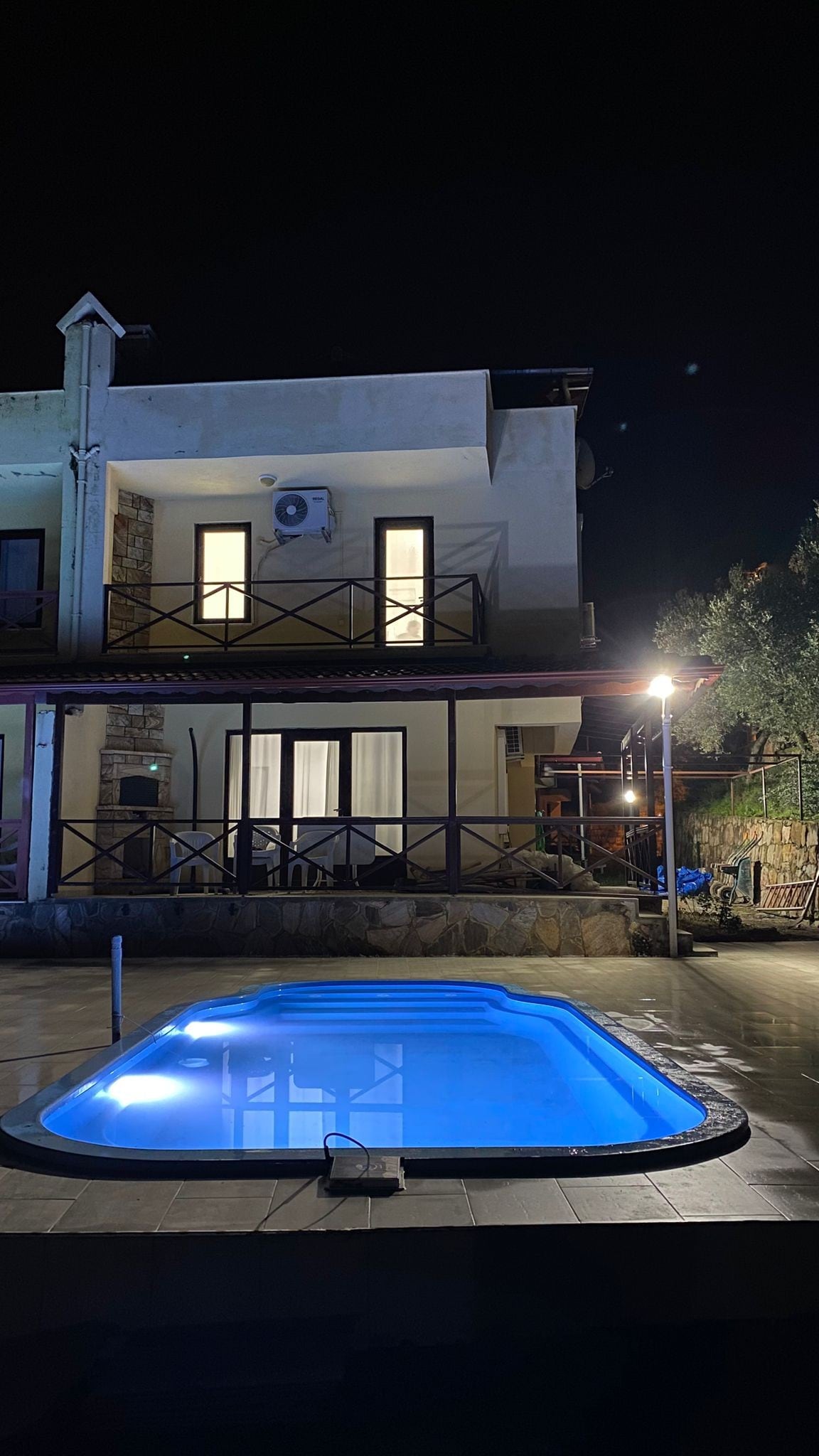 Pelitkoy beach is in the aquarium bay. In addition to being in touch with the sea and nature, there is a market, a public beach and a paid beach cafe.On the ground floor of our villa, there is a very large veranda private pool and garden area, and there is a living room, kitchen and WC area. On the first floor there are 3 bedrooms, WC & bathroom area and balcony area. It has a very large terrace area where you can watch the sunset. We provide airport and bus station transfers for a fee