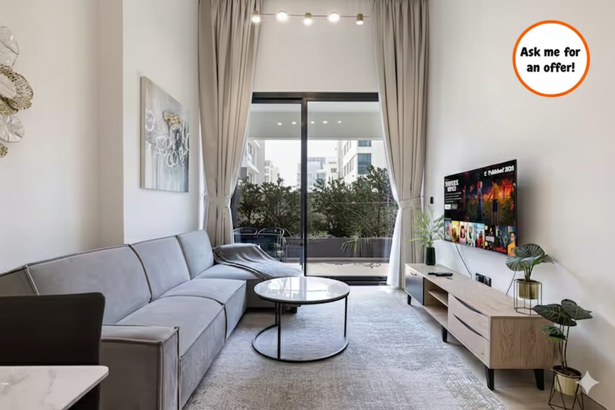 Bienvenido a tu luminoso y moderno apartamento de 1 dormitorio en el corazón de Jumeirah Village Circle, perfecto para parejas, viajeros solitarios, huéspedes de negocios e incluso familias pequeñas. Amueblada con esmero y llena de luz natural, esta casa ofrece todo lo que necesitas para disfrutar de una estancia cómoda y relajante. Ya sea que estés de visita por unos días o planeando una estadía más larga, te sentirás como en casa. Relájate en este espacio tranquilo y elegante.