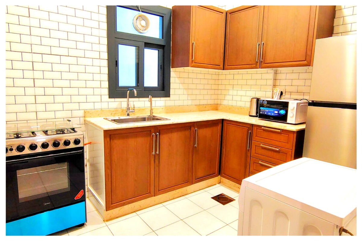Mantente tranquilo y relájate con tu familia en este alojamiento tranquilo. Departamento totalmente amueblado en la habitación y salón Fattatas + cocina totalmente equipada + salón grande + 2 baños con servicio de limpieza + gimnasio + vestíbulo + guardia + ladridos puerta principal segura para llegadas y extranjeros