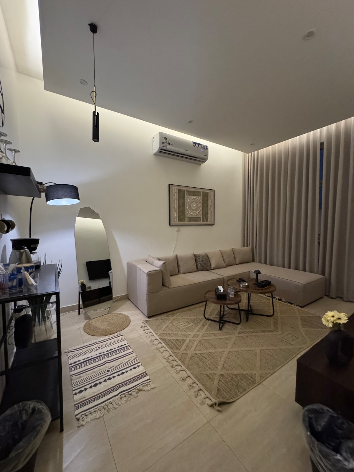 This unique place has a style all its own.A stylish and modern apartment with a unified design between the living room and bedroom. The space features cozy furniture and elegant decor that creates a relaxing atmosphere. Equipped with a 65-inch Smart TV with access to all major streaming platforms, and high-speed fiber internet. Enjoy a Nespresso coffee machine, electric kettle, and a compact kitchen with a stovetop and toaster for your daily needs. A perfect stay for both work and relaxation.