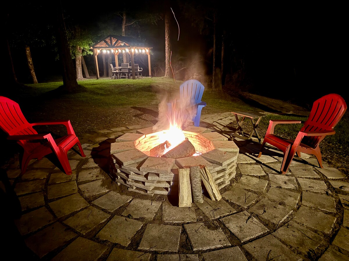 Desconecta de la rutina en este alojamiento único y relajante ubicado en 100 acres y enclavado tranquilamente en un estanque privado. La casa fue construida originalmente en 1921 y en 2018 la trasladamos al estanque e hicimos una renovación completa preservando todo el carácter original que pudimos. Disfruta de tu café por la mañana y observa el amanecer desde el columpio del porche o desde uno de los muelles del estanque. La propiedad tiene senderos naturales para explorar, pescar y mucha vida silvestre.