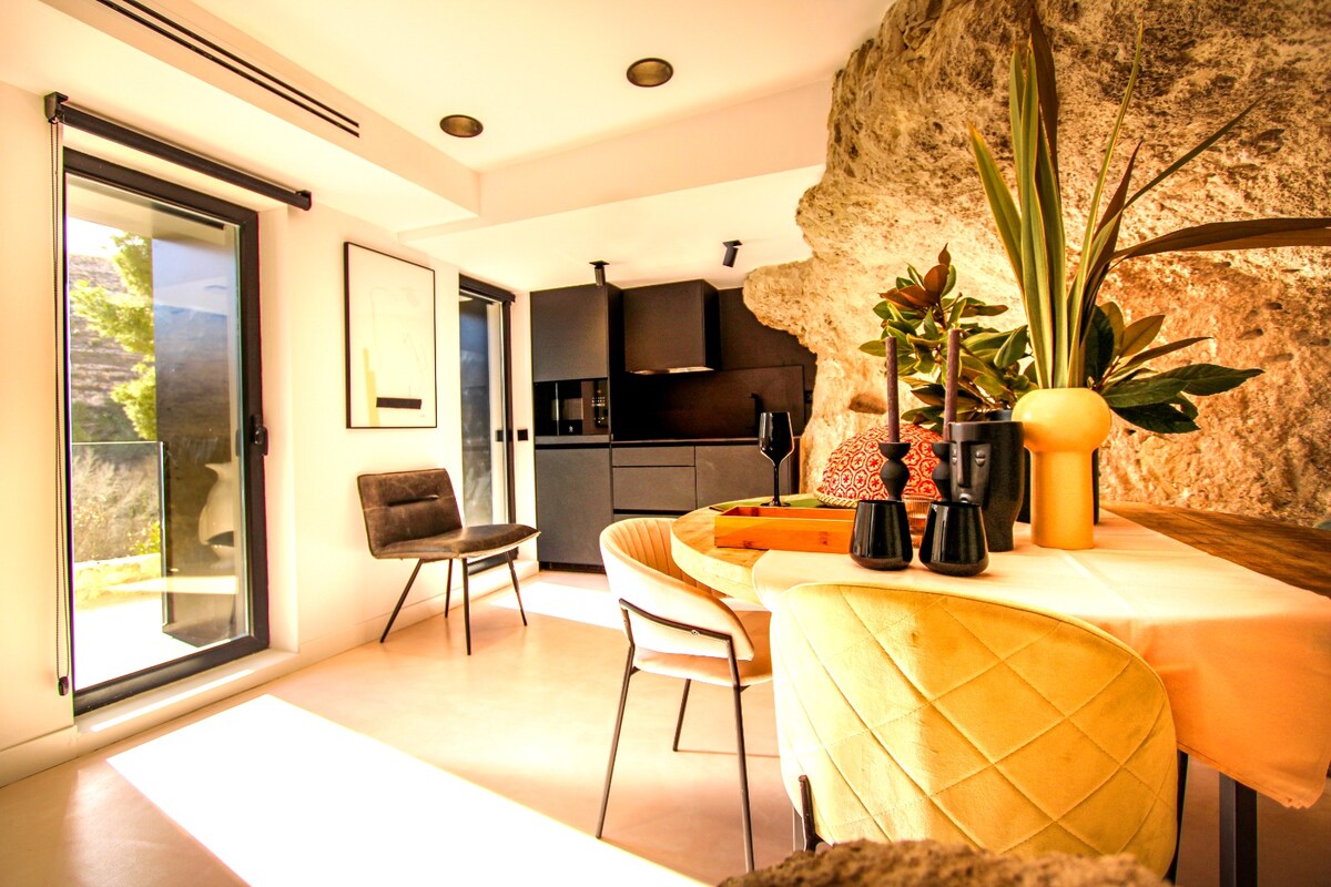 PIACORY es una cueva con siglos de antigüedad, que fue rehabilitada íntegramente en 2022. Consta de 100 m2, divididos en dos plantas, una primera planta, con un amplio salón con cocina. En la segunda planta nos tiene un dormitorio con una cama KING SIZE y jacuzzi privado climatizado. Desde el dormitorio de la suite, se accede a una espectacular terraza privada de 50m2, donde se ubica una piscina privada, la cual, no dejará a nadie indiferente