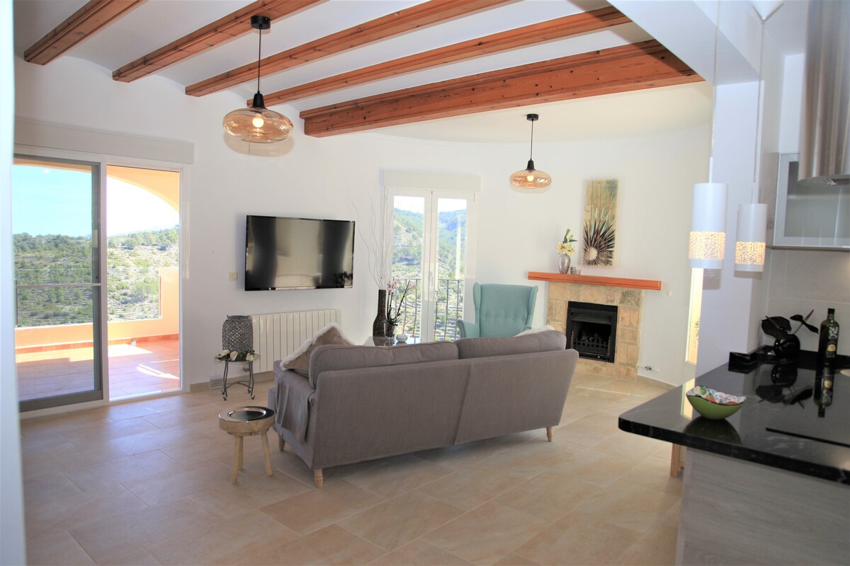 Encantadora casa con vistas espectaculares en pequeño pueblo de montaña de la Marina Alta. Incluye 2 dormitorios dobles con cama king size (posibilidad 2 individuales) y baño en suite, cocina totalmente equipada, salón con estufa de leña, pequeño salón con sofá-cama para 2 pers, 3er baño, terrazas orientadas sur en 4 niveles + jardín con árboles frutales. ¡Lugar ideal para los amantes de la naturaleza, el senderismo, la tranquilidad pero también para el teletrabajo (fibra óptica, impresora)!