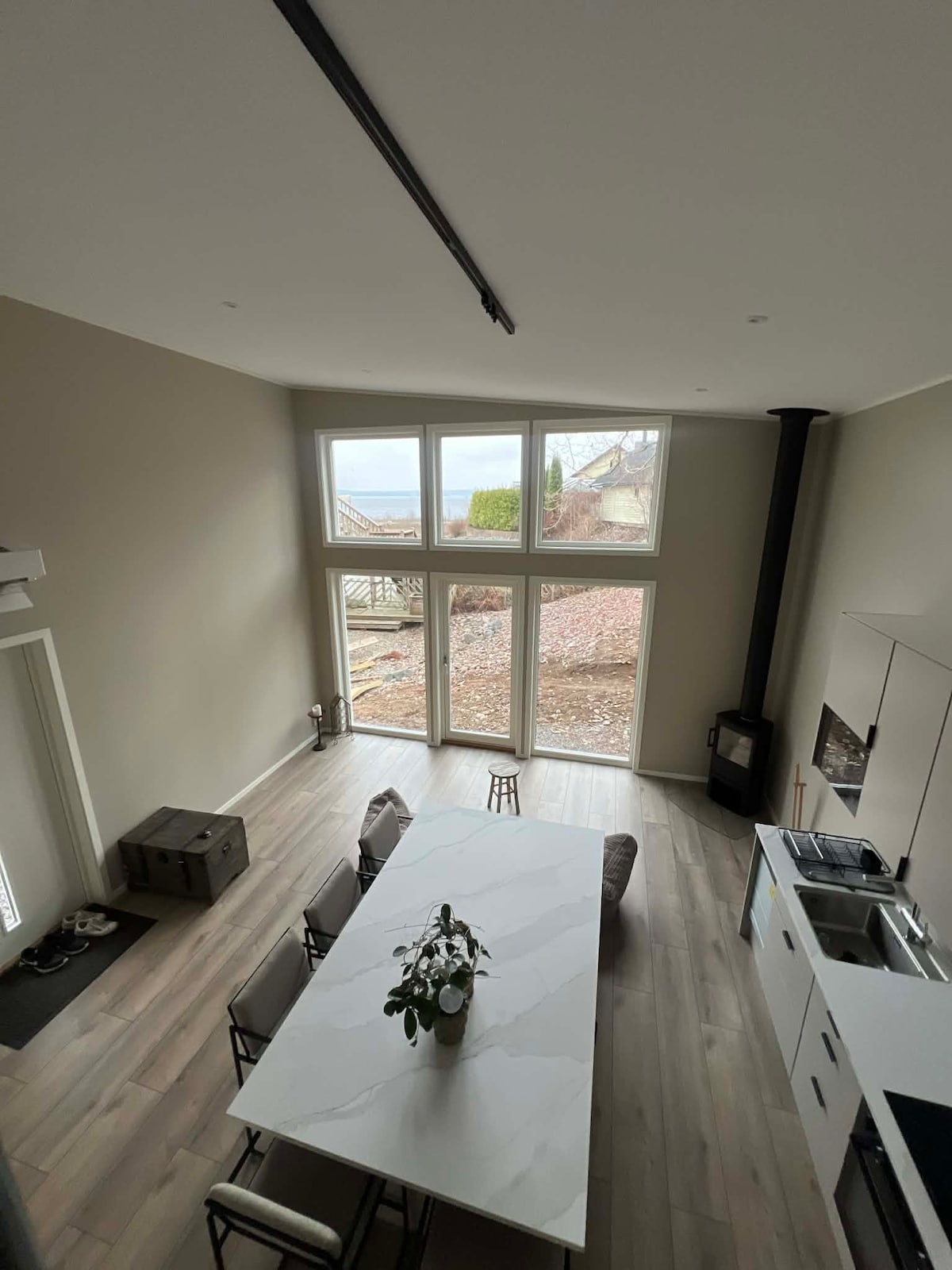 Departamento de invitados de nueva construcción con loft para dormir de unos 40 metros cuadrados. Atardecer con sol después del almuerzo. Aire acondicionado. A unos 330 metros del lago y la posibilidad de nadar desde el embarcadero. Y a unos 500 metros de la zona de piscina con playa y torre de buceo. En el centro, existe la posibilidad de alquilar un kayak o SUP. Estacionamiento gratuito y CONEXIÓN WI-FI. Cama de 160 cm en loft y sofá cama de 140 cm en la sala de estar. Televisión inteligente de 65 pulgadas con Chromecast, Apple TV y Playstation 4. No hay una altura total de pie en el loft. A unos 15 minutos a pie de la estación de tren de Floda.