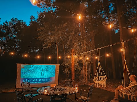 Tómatelo con calma en esta escapada única en el bosque de Kisatchie, a pocos minutos del embalse de Indian Creek. ¡Gran oportunidad para caminar por la naturaleza, hacer kayak, pescar o simplemente relajarse en el columpio/las mecedoras del porche delantero con una bebida de su elección para disfrutar de una hermosa puesta de sol, cediendo el día a un cielo nocturno repleto de estrellas! Despiértate con una taza caliente de sol en un jacuzzi privado y protegido, respaldado por altos pinos, hojas susurrantes y una deliciosa brisa. ¡Sí! ¡Es maravilloso!