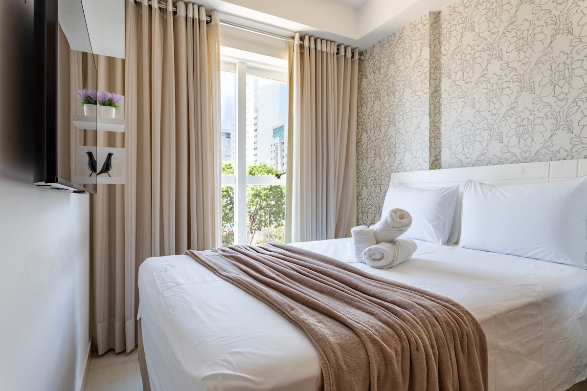 Apartamento planejado e pensando para dar conforto, praticidade e uma estadia inesquecível para o meu hóspede, fiz ele com capricho e carinho como se fosse pra mim. Sua localização é privilegiada, localizado dentro de um shopping, estacionamento, metrô, restaurante como Coco Bambu e outback , carrefour, piscina, academia e mini mercado. Todo planejado, com 2 suítes com ar condicionado, cozinha e sala open for plan, armários, mobília nova de 1a linha, camas e colchões Probel e sofá cama em linho.