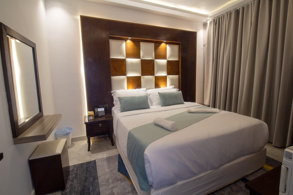 جناح بغرفة نوم وصالة ونوافذ واسعة
