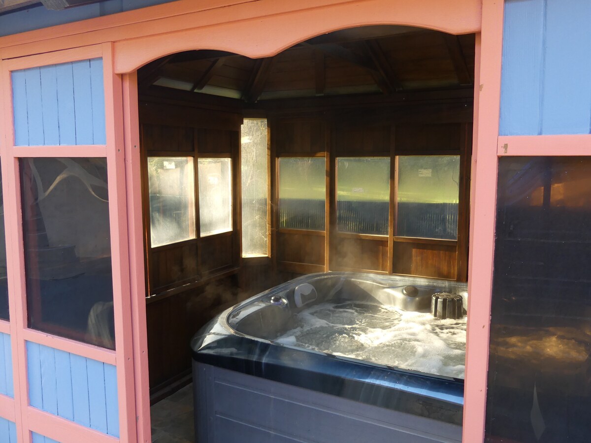 Casita, terraza, jardín con vistas panorámicas