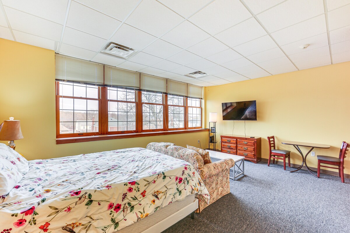 ¡Ven a relajarte a nuestra nueva ubicación! Este histórico almacén se convirtió en apartamentos, pero aún conserva sus características arquitectónicas originales. Disfruta de la estética industrial moderna con techos de 15 pies de altura, paredes de ladrillo, suelos de hormigón originales y tragaluces en el atrio con luz natural. Estas unidades vienen completamente amuebladas y la mayoría tiene cocinas completas y todos los accesorios necesarios para que dejes tu maleta y empieces a relajarte. **AHORA SE ADMITEN MASCOTAS: TARIFA DE 50,00 USD POR ESTANCIA**