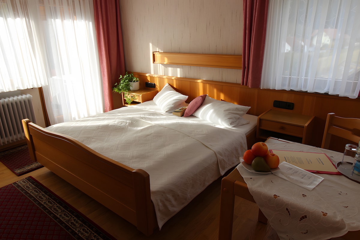 Nuestras habitaciones dobles están orientadas al sur y disponen de balcón o terraza. Están decoradas con estilo en un ambiente típico de la Selva Negra, usando mucha madera local. Todas las habitaciones cuentan con televisión vía satélite y Wi-Fi. El desayuno es muy completo y os garantiza un comienzo especial del día. Por supuesto, el aparcamiento está disponible de forma gratuita. Es ist uns eine große Freude, euch in unserem Hause willkommen zu heißen.