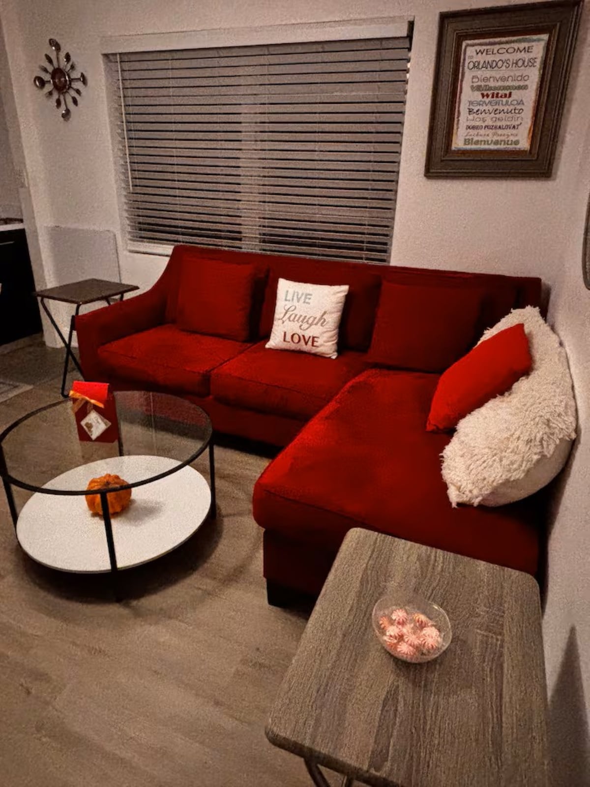 - Casa tranquila de lujo de 2 dormitorios/1 baño reformada con chimenea, tragaluces, TV de 87 pulgadas, candelabro y cocina completa. - Baño espacioso: barras de la Ley de Estadounidenses con Discapacidades (ADA) para la ducha y el inodoro y el espejo inteligente. - Gimnasio exterior con zona de juegos para niños y lavandería exclusiva. - A 1 minuto en coche de la carretera principal Orlando ( Disney, Universal, Aquatica, Playas, Downtown ) a aproximadamente 30 minutos - Un montón de estacionamiento privado gratuito justo enfrente de la casa - Se admiten mascotas.