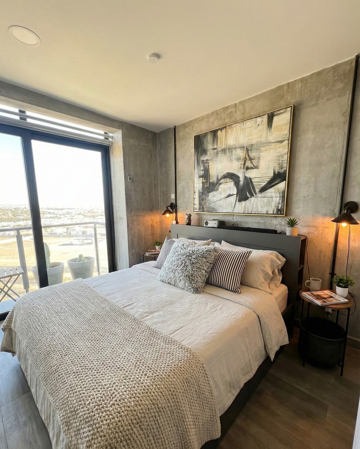 MORADA LIVING Perfecto para amigos, compañeros de trabajo o viajeros que prefieren dormir por separado, este estudio ofrece dos camas individuales, sofá cama, cocina completa, Smart TV y escritorio. Su diseño moderno lo hace práctico y cómodo para estancias cortas o largas. El edificio cuenta con áreas comunes agradables y se encuentra en una ubicación estratégica: cerca del Centro Histórico, Colonia Americana y Parque Agua Azul. Comodidad, flexibilidad y ubicación en un solo lugar.