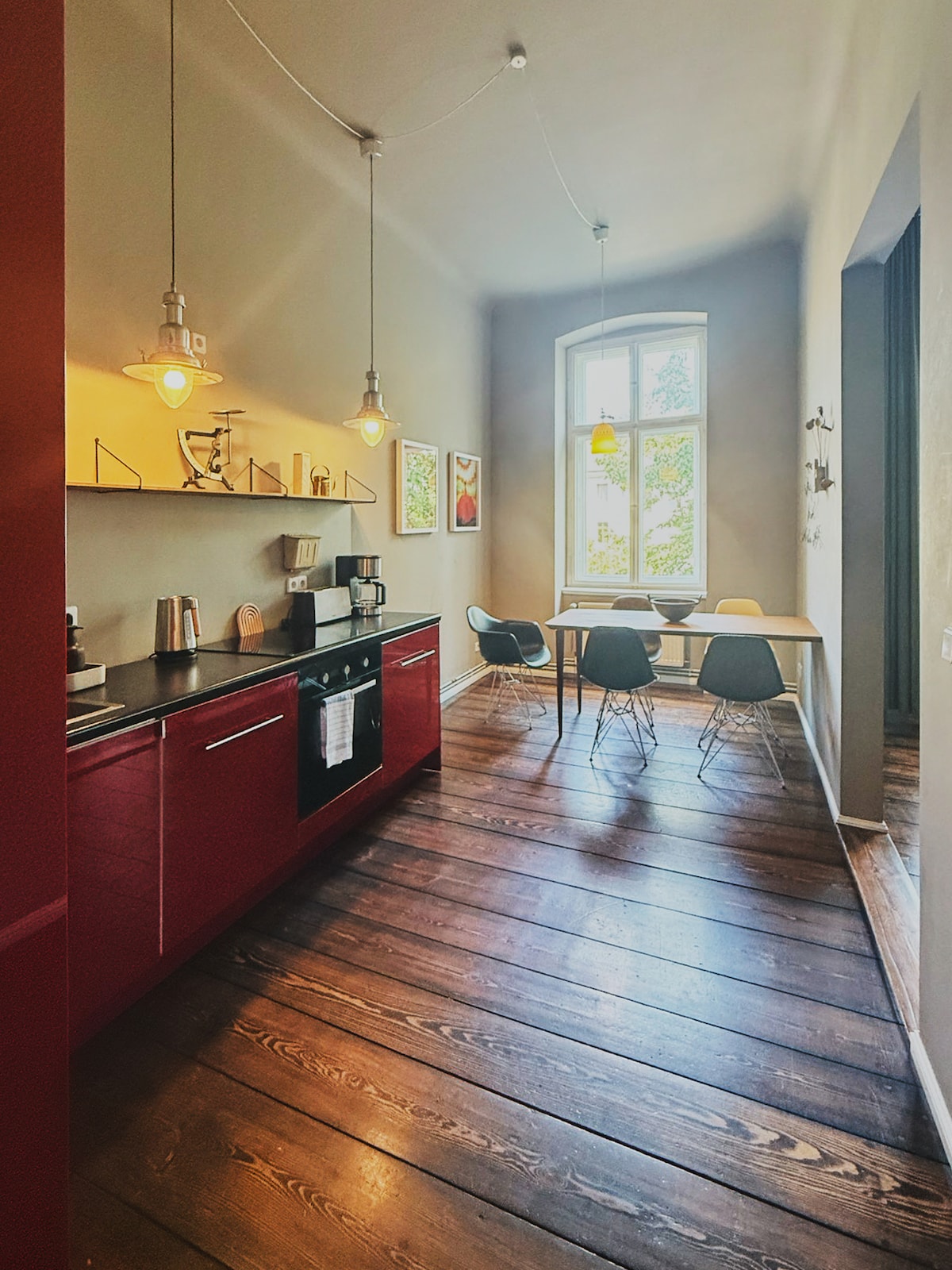 Este encantador apartamento en el corazón de Berlín está rodeado de restaurantes, cafeterías, tiendas, galerías y museos, pero es tranquilo. Está amorosamente planeado y amueblado. En este apartamento pueden hospedarse 4 personas. El dormitorio es pequeño pero tiene una cama doble de 160 x 200. La sala de estar está equipada con un acogedor rincón para sentarse que incluye un sofá cama de 140 x 200. Ten en cuenta que el sofá no es tan cómodo como una cama adecuada. ¡Por fin tenemos ascensor! El camino a las estaciones de metro, autobús y tranvía es corto.