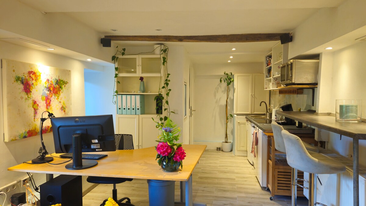 Genießen Sie eine erholsame "Kleine Auszeit" in unserem modernen und hellen Einraum-Apartment, idyllisch gelegen auf einer Lenneinsel mitten in Altena. , - Moderne, helle Einrichtung (Frisch renoviert im Mai 2025) - Ausschließlicher Blick ins Grüne - Ruhige, zentrale Lage - Für Alleinreisende und Paare - Voll ausgestattet mit allem, was Sie für einen angenehmen Aufenthalt brauchen Hinweis: Die Wohnung ist nicht barrierefrei und nur über mehrere Stufen erreichbar.