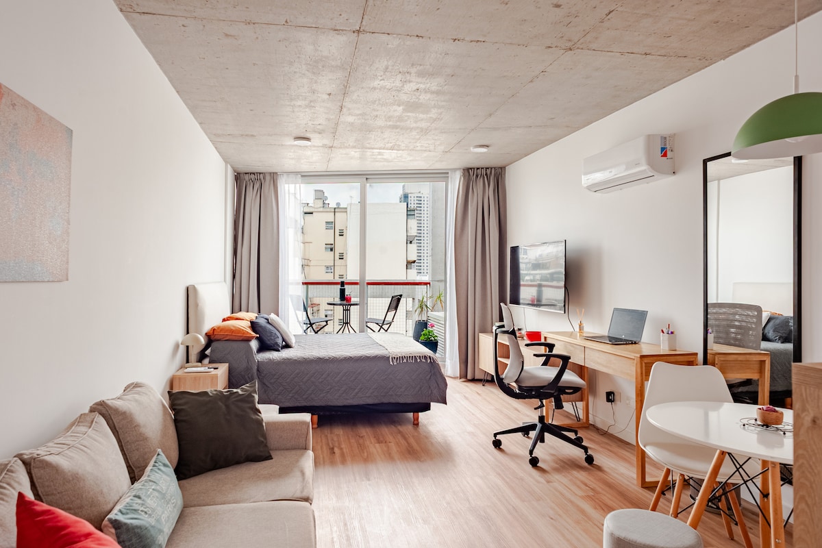 Estudio amplio, moderno y luminoso ideal para tu estadía. Ubicado en el corazón de Palermo Soho rodeado de restaurantes, bares y comercios de todo tipo. A pocas cuadras del jardín botánico, el jardín japonés y los bosques de palermo. Totalmente equipado para que solamente tengas que planear y disfrutar tu viaje!
