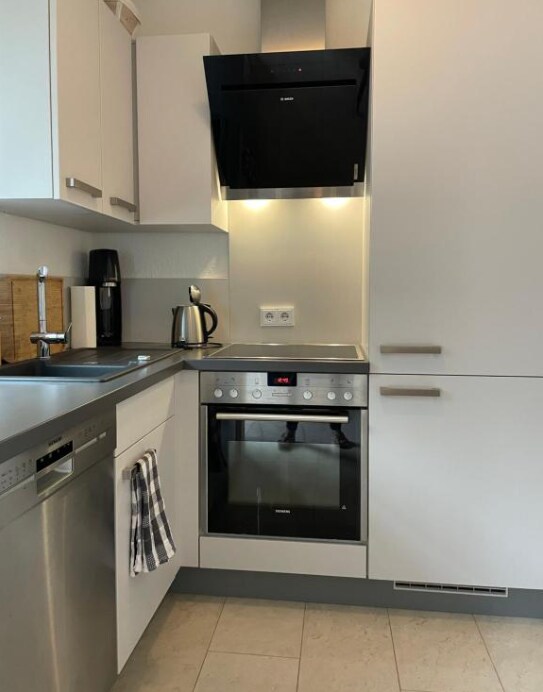 Das elegante 90m²-Design-Apartment für bis zu 5 Personen mit hochwertiger Einrichtung, Parkettboden, Gas-Kamin, liebevollen Details und stilvollem Farbkonzept ist ruhig gelegen. Es bietet 2 Schlafzimmer, komfortable Betten (davon ein Boxspringbett) und einen gemütlichen Wohn- und Essbereich mit Schlafsofa und Balkon. WLAN, Smart-TV in jedem Zimmer, Gartenmitbenutzung. Küche mit Spülmaschine, Backofen, Herd und Nespresso Kaffeemaschine. Digitaler Self-Check-In, Handtücher & Bettwäsche inkl.
