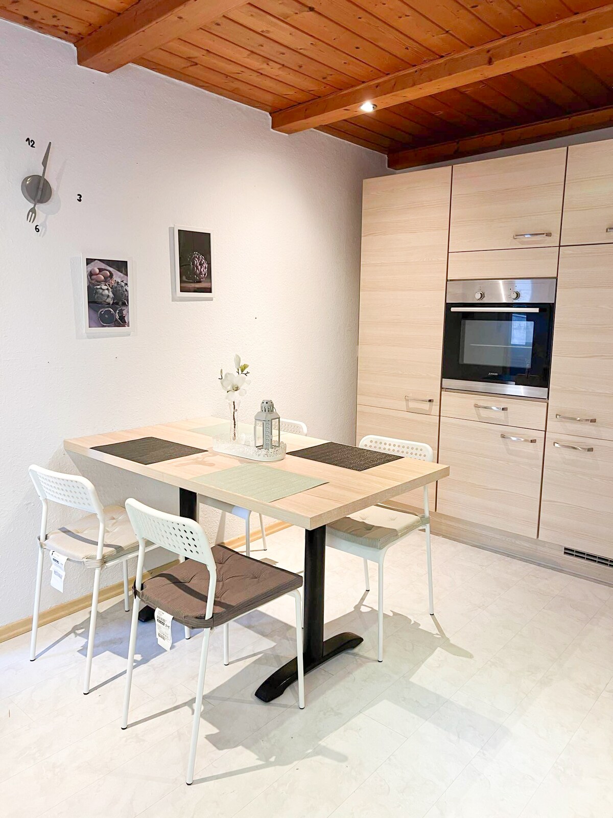 Hermoso, moderno y luminoso apartamento en una ubicación muy tranquila con 3 dormitorios en el ático de un edificio de apartamentos. 1 SZ con cama matrimonial 1 habitación con litera 1 habitación con cama individual, cama armario y sofá cama. Baño con ducha e inodoro Amplia sala de estar Acogedor paisaje de sofá con TV Mesa de comedor para 6 personas Cocina abierta y totalmente equipada Enorme solárium con vistas fantásticas A poca distancia: supermercado, varios panaderos, farmacia, caja de ahorros y banco, posadas, restaurantes.