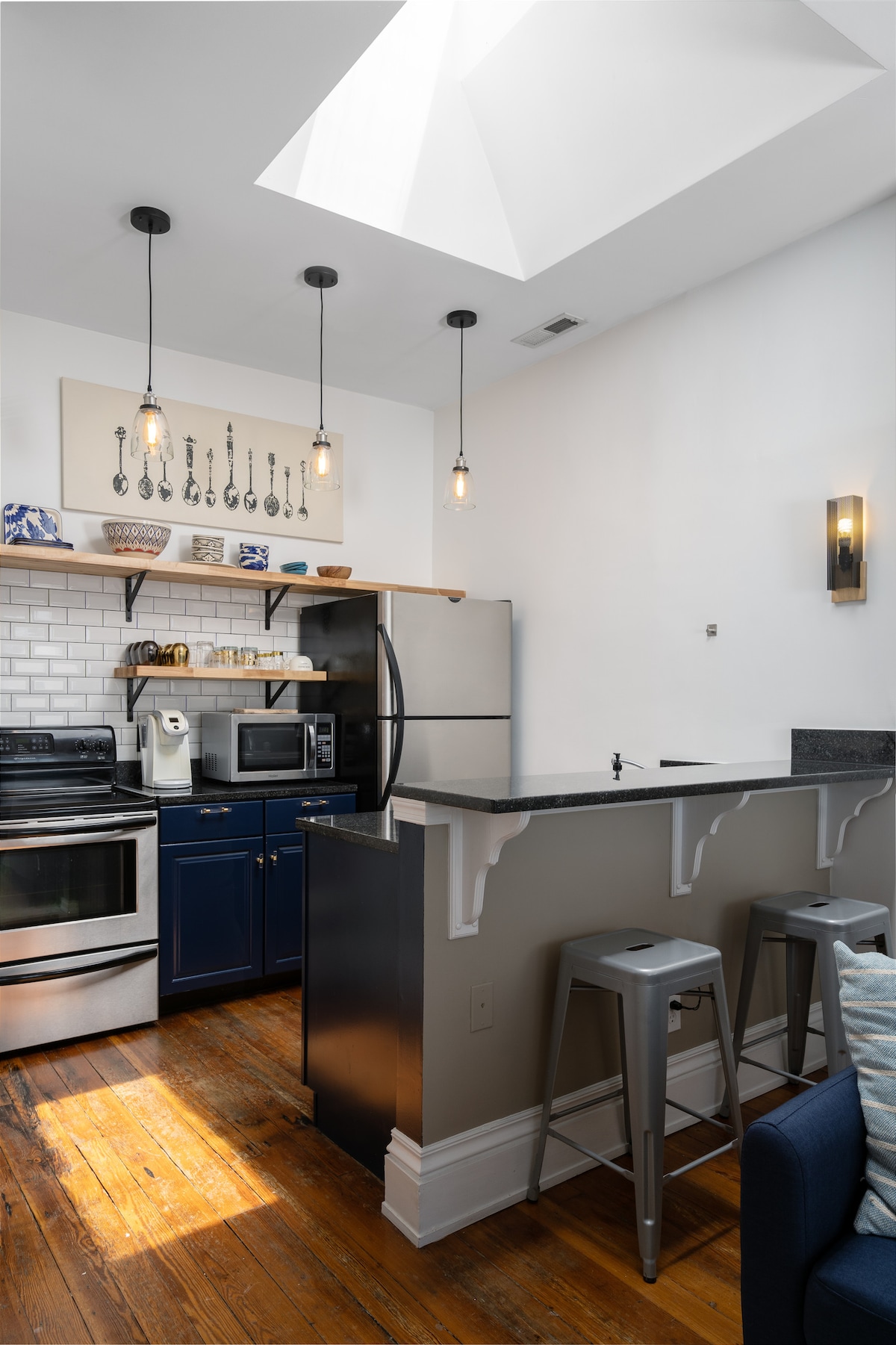 ¡Te damos la bienvenida a Sixteen West! Este elegante y moderno departamento se encuentra en el corazón del histórico Jackson Ward. Recientemente renovado, el espacio cuenta con hermosos pisos de madera, accesorios de iluminación actualizados y una cocina elegante y totalmente equipada. Estarás a pocos pasos de algunos de los mejores lugares de Richmond, como Tarrant's Café, Quirk Hotel, The National y más. Por favor, ten en cuenta que esta unidad requiere subir 2,5 tramos de escaleras, NO HAY ASCENSOR.