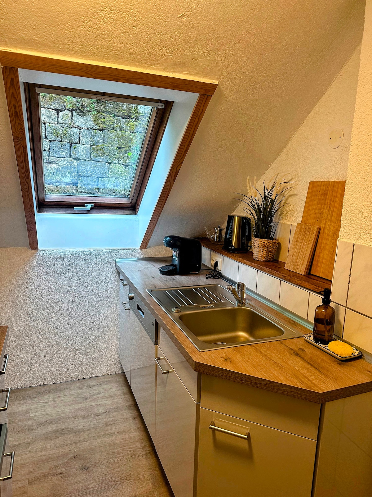 El apartamento de vacaciones LOFT 2d está situado en un patio trasero tranquilo y tiene capacidad para dos personas. En dos plantas y una amplia azotea con muebles de salón se pueden pasar horas de relax a solas o en pareja. Si desea relajarse, el apartamento de vacaciones ofrece todo lo que necesita para una estancia relajante. En verano, la azotea invita a tomar el sol. En invierno, el apartamento destaca por su chimenea panorámica.