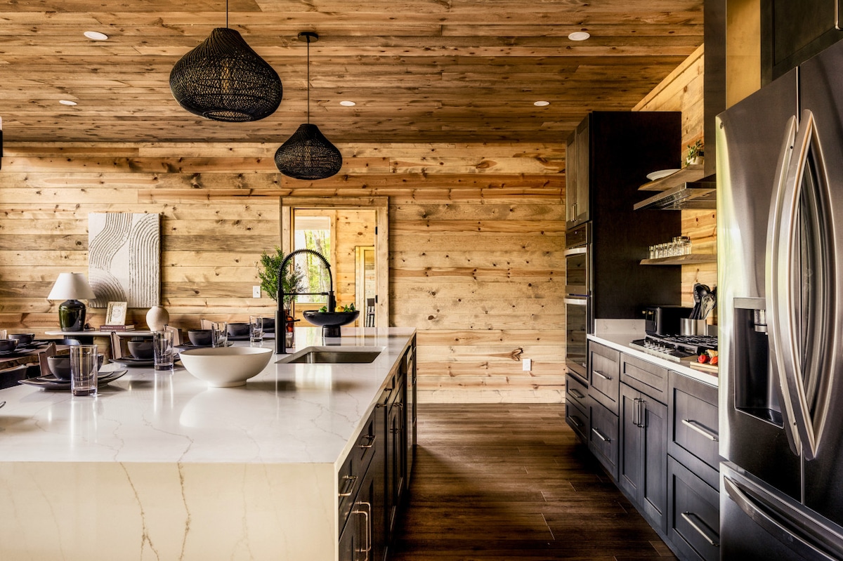 Nuthouse: pickleball, chimenea y vistas a la montaña