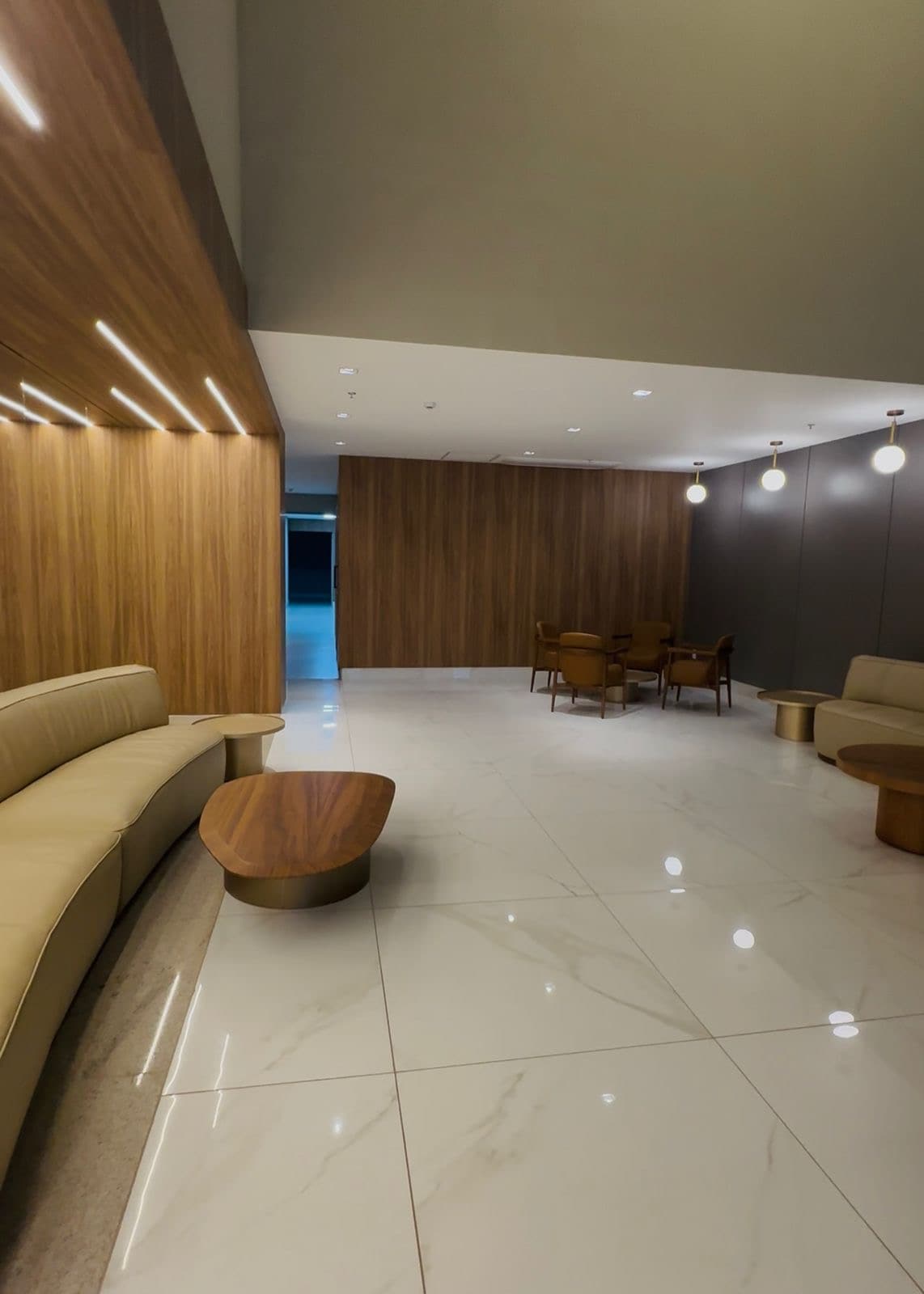 Cerca de UniEvangélica, Hospital de Urgência, Centro Hospitalar Ânima y APAE. 1 baño Cocina integrada, cocina cooktop de 4 hornallas y campana extractora y minibar. Armarios, cama doble, sofá, TV Garaje rotativo Cerradura electrónica Conserjería automatizada Ascensor Lavandería compartida Coworking con parrilla y mesa de juegos Estacionamiento de bicicletas Porcelanato pulido 60x60 Aire acondicionado