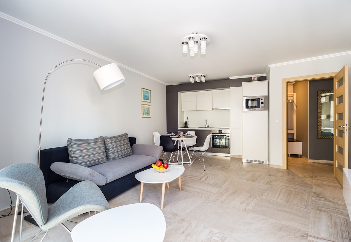 Moderno apartamento de 1 dormitorio con estacionamiento cerca del centro de la ciudad