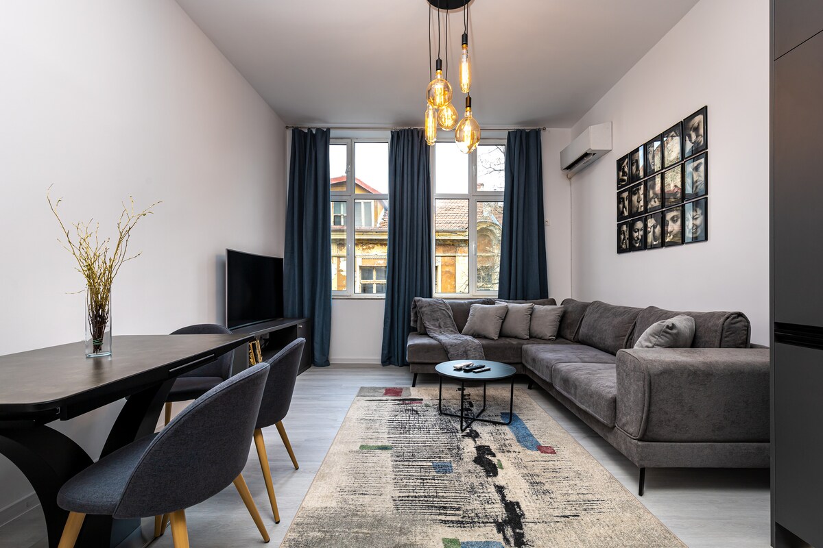 ¡Te damos la bienvenida a tu encantador refugio en Plovdiv! Este elegante apartamento cuenta con un dormitorio sereno, donde las lujosas sábanas y los colores cálidos invitan a un sueño rejuvenecedor. Pisa la acogedora terraza, perfecta para saborear el café de la mañana o los cócteles de la noche. Ubicado en el corazón de Plovdiv, este tranquilo oasis promete una estancia inolvidable.