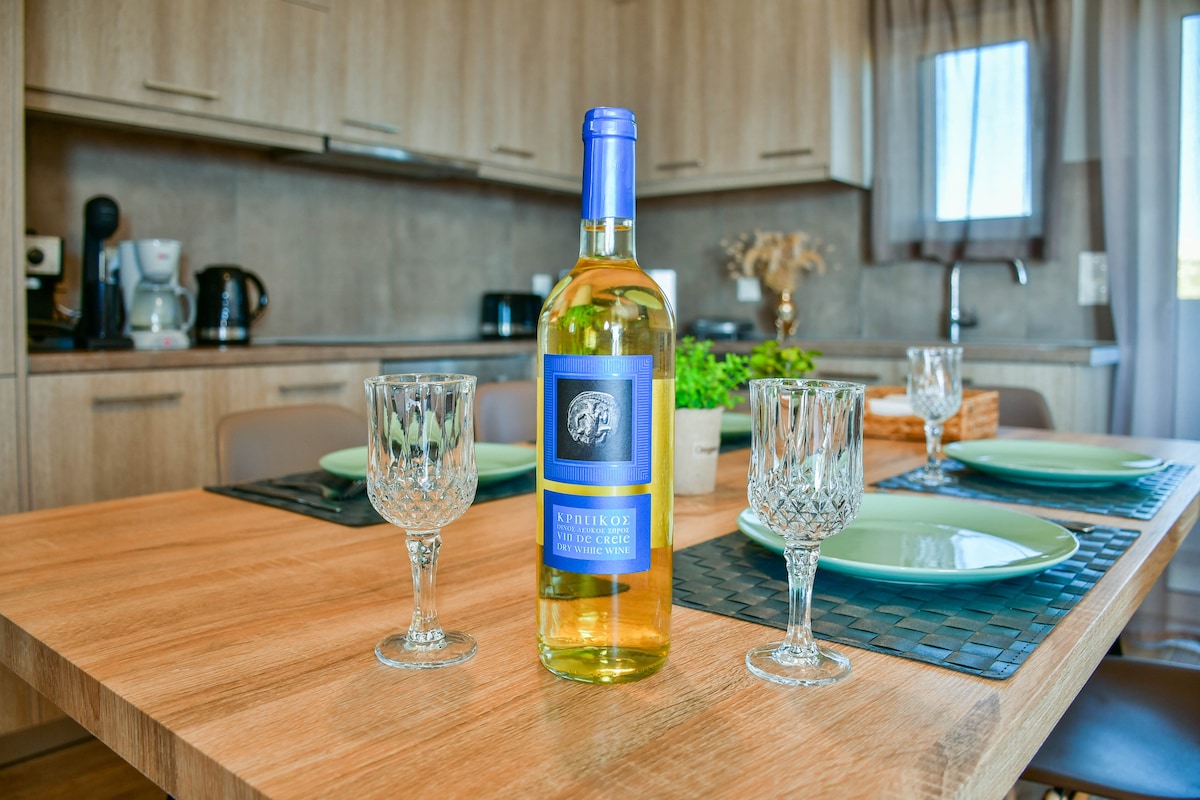 Le Grland Bleu, se encuentra a solo 1,5 km del centro de Sitía en una ubicación idílica y relajante a 30 metros del mar, donde hay acceso para nadar desde las rocas. Cuenta con una gran terraza privada con pérgola desde donde se puede disfrutar del azul profundo de la bahía de Sitía y el color púrpura del amanecer. En las zonas exteriores, es necesario que los niños estén supervisados por un adulto.