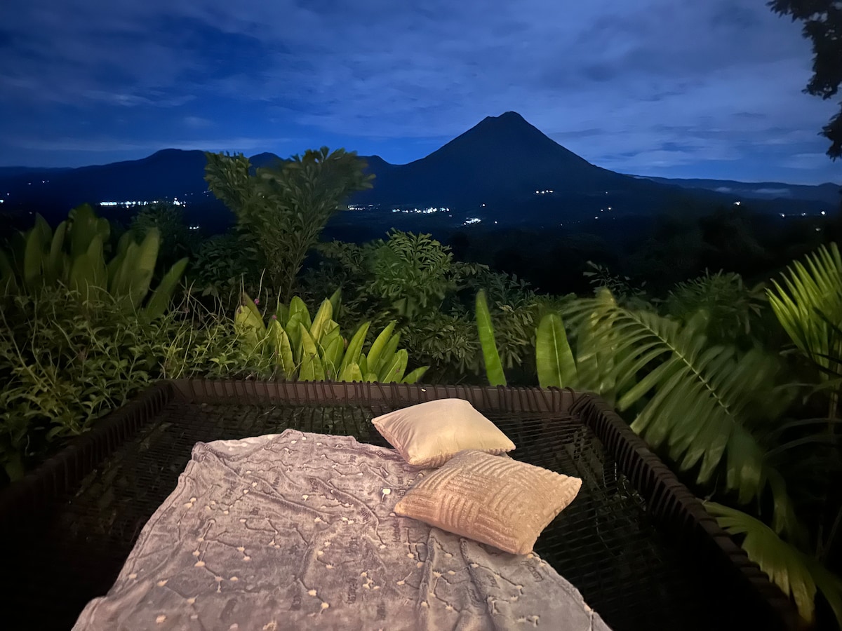 Edén deluxe Arenal es un espacio rodeado de naturaleza, con todas las comodidades para una estancia relajante y tranquila. Se ubica a 5 kilómetros de los mayores atractivos de La Fortuna. El Bungalow se encuentra en la selva tropical, por lo que es posible observar perezosos, aves, monos y demás animales en su hábitat natural desde la comodidad de su habitación. Ofrecemos senderos, tours personalizados y servicio de alimentación a la habitación.