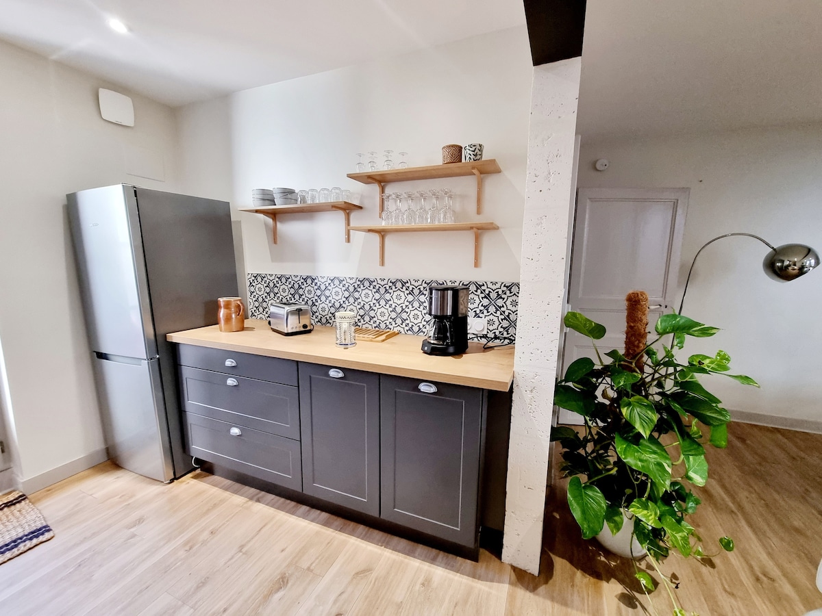 Estudio elegante y cálido en pleno centro de Angulema, ideal para disfrutar a pie de restaurantes, tiendas, callejuelas animadas y lugares culturales. Muy tranquilo, este T2 incluye una sala de estar con sofá y TV, un dormitorio separado con espacio de trabajo, una cocina equipada, un baño moderno y ropa de cama cómoda. El encanto del centro histórico a mano para una estancia cómoda. ¡Solo queda dejar las maletas!