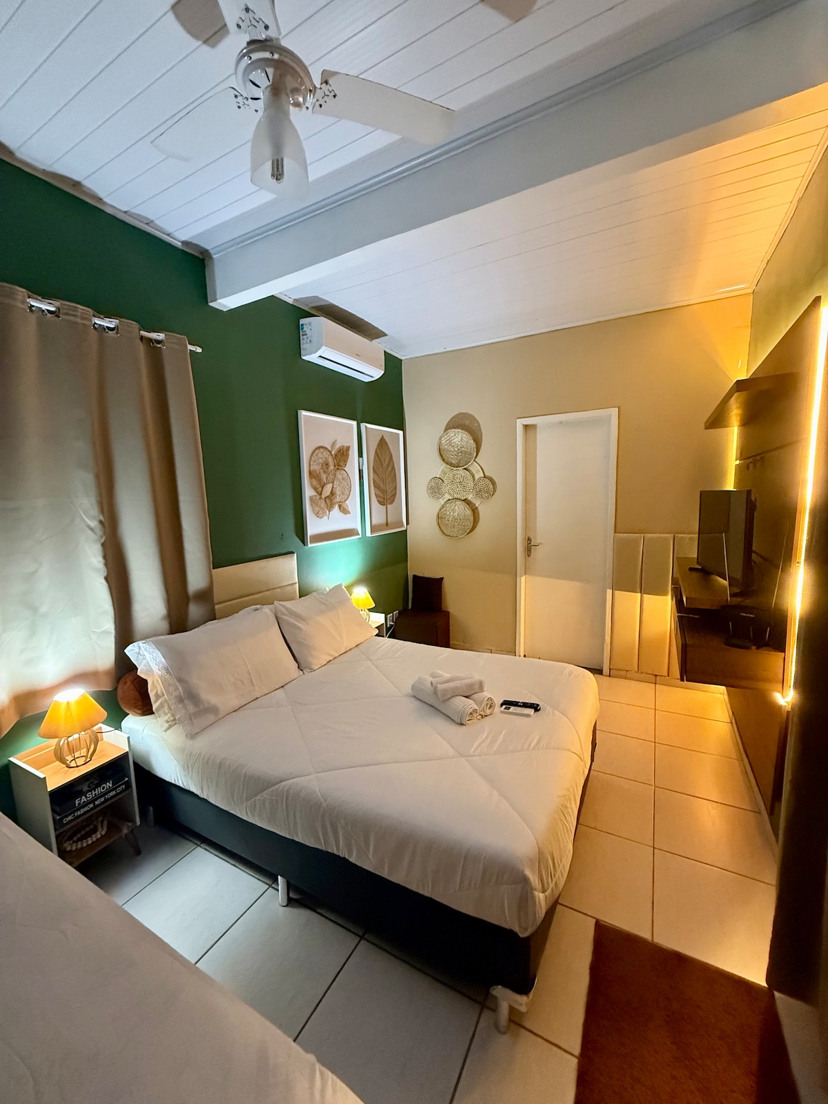 Apartamento: Cocina completa (nevera, cocina eléctrica, ollas, sandwichera, utensilios, WiFi). Sala: Aire acondicionado, mesa con 4 sillas. Dormitorio: cama doble, smart TV 32" con TV por cable, aire acondicionado y armario de 2 puertas. 1 baño. Balcón con mesa y 4 sillas frente a la piscina y el mar. Además, tenemos una lancha disponible para que los huéspedes la recojan y la lleven directamente al Resort Green Coast. Fotos de la lancha adjunta disponibles.