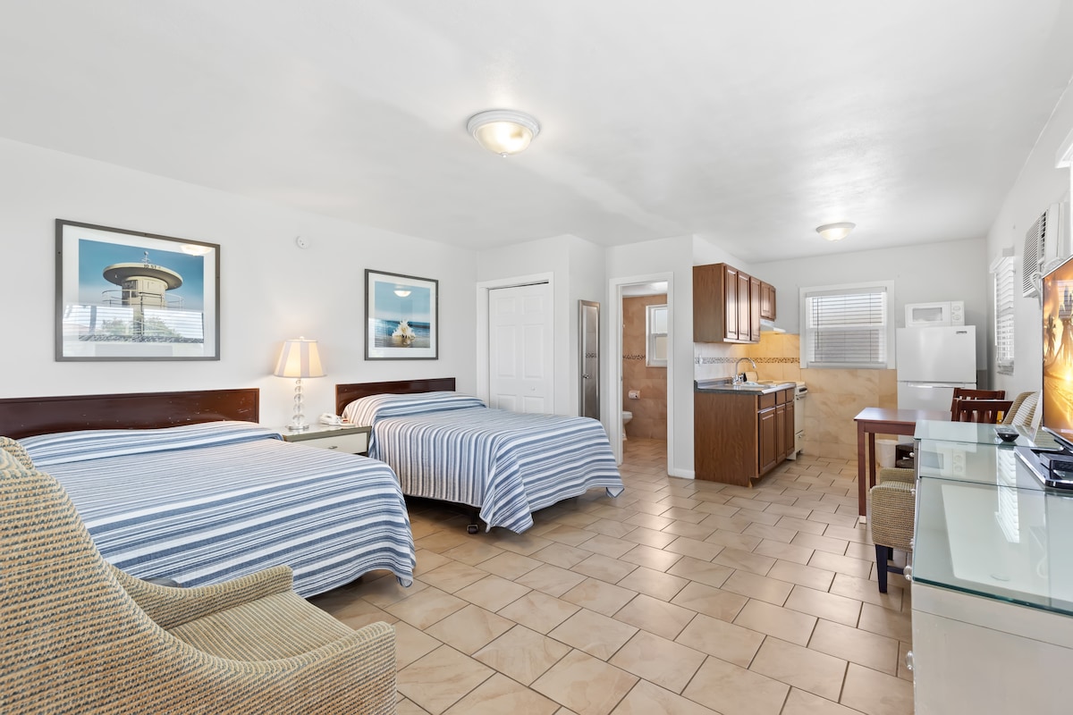 Suite de lujo para 2 personas ubicada en el corazón de Pass-A-Grille Beach. Relájate en esta suite recién remodelada de 1 cama y 1 baño con todos los servicios que necesitas para una estancia corta o larga. Propiedad de estacionamiento gratuito, bicicletas, WiFi y lavadora y secadora. Gran área de piscina rodeada de tumbonas Adirondack, sillas, mesa de comedor, sombrillas y juegos para adultos. Estación de barbacoa completa con dos mesas de picnic. El balcón tiene cuatro sofás y TV de pantalla plana. Camina a restaurantes, tiendas, bares y, por supuesto, a la playa :-)