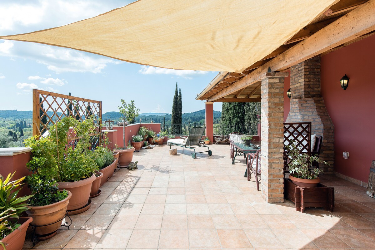 Con una ubicación ideal en la cima de una montaña en el pueblo griego tradicional central de Evropouloi, a solo 10 minutos en coche de la ciudad de Corfú y del aeropuerto de Corfú y a 20 minutos de las playas más famosas, esta impresionante casa de piedra recién reformada es el lugar perfecto para tus vacaciones griegas. Ofrece unas vistas impresionantes a través del canal Jónico hasta el continente griego.